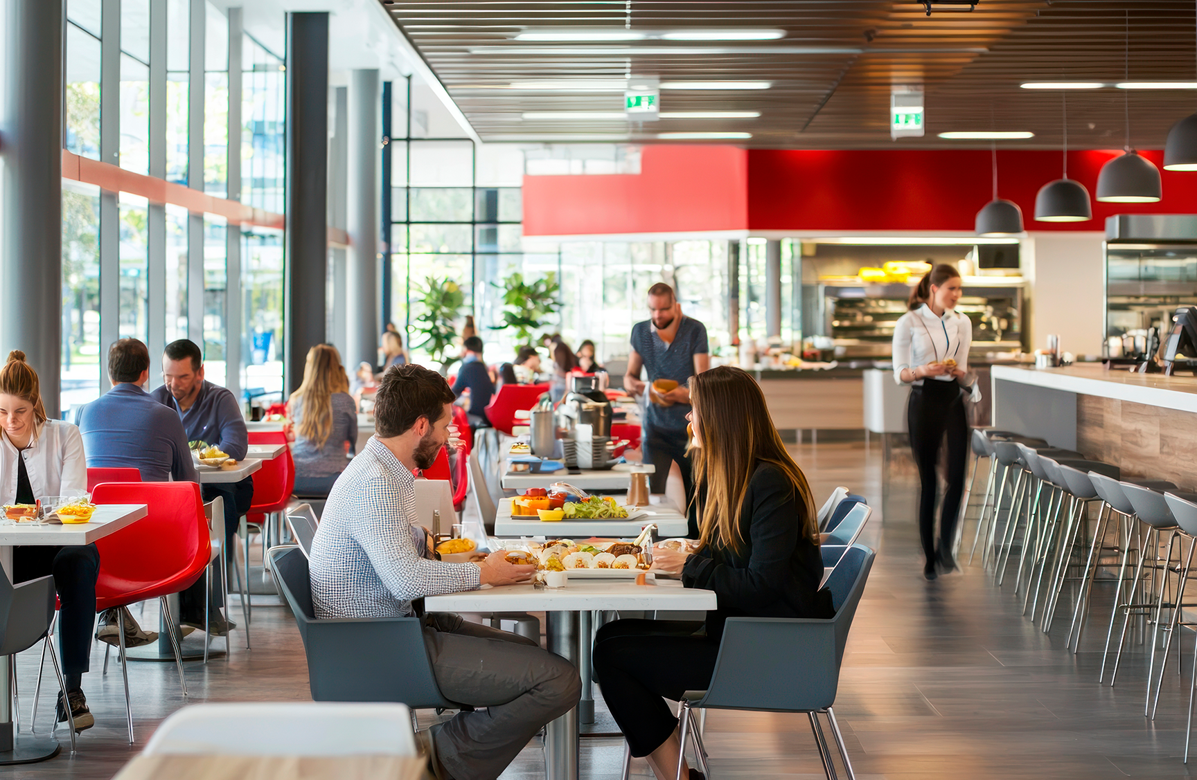 Cuidamos de toda a ambientação do refeitório, criando espaços modernos, confortáveis e pensados para o bem-estar dos seus colaboradores.